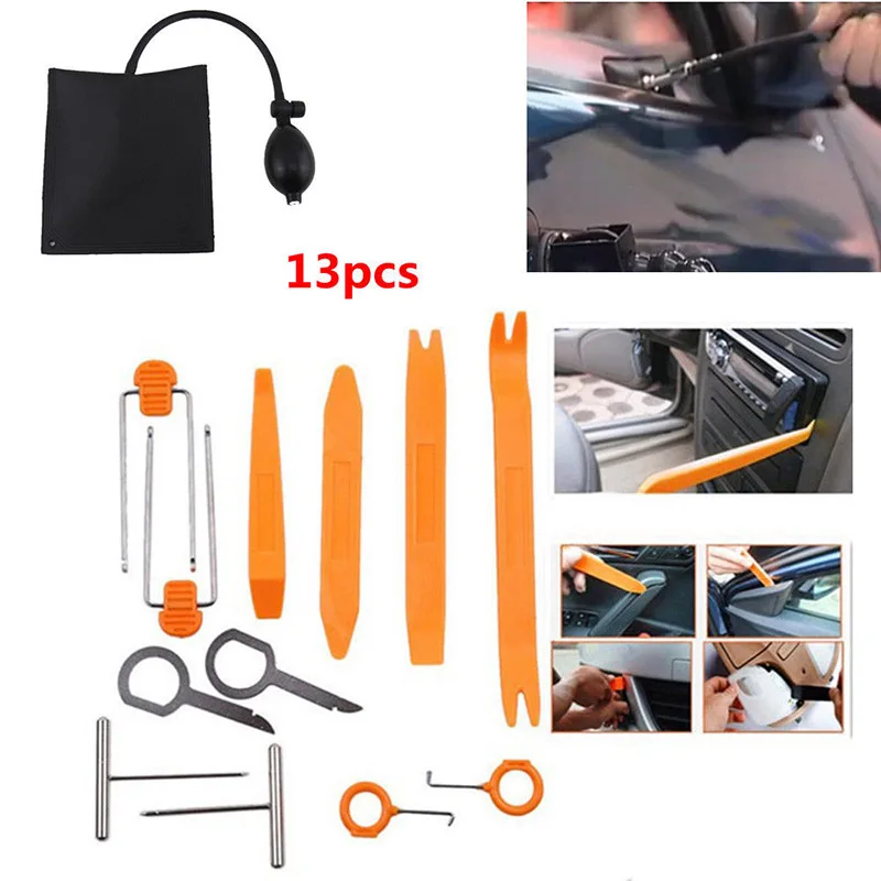 HIGH QUALITY Universal Open Pry Tools Kit Panel Removal Dash Door Radio +Gasbag for Car