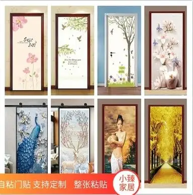 Door sticker Wooden door renovation sticker Waterproof cabinet old door renovation self-adhesive de