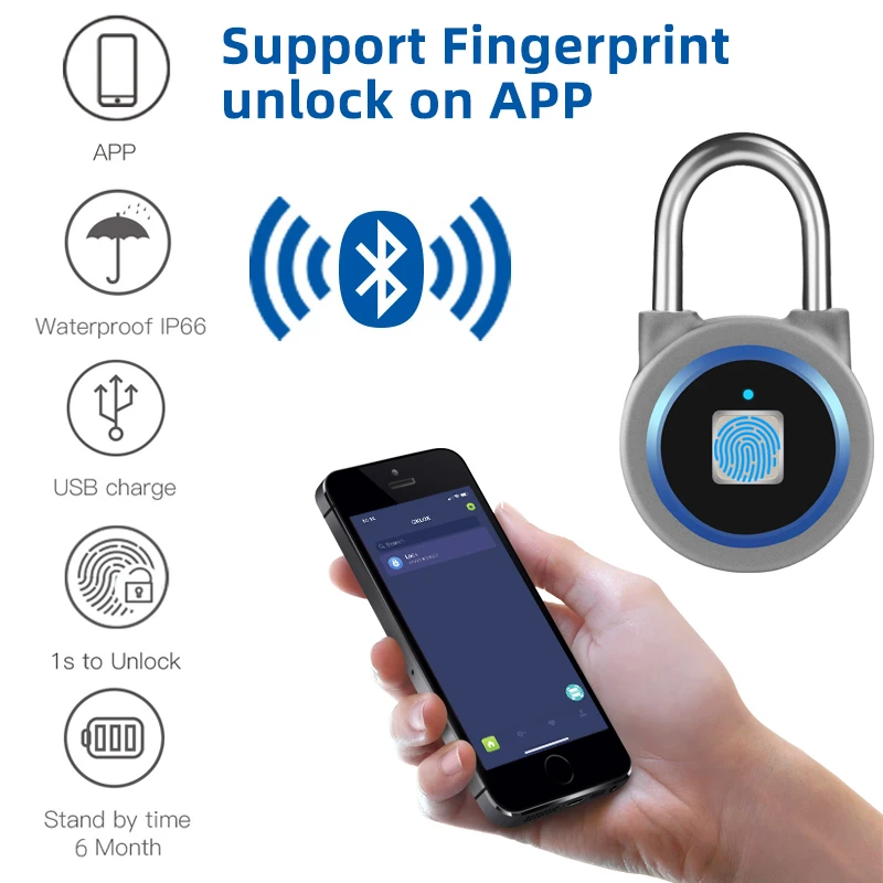 BEST QUALITY Portable Bluetooth Smart Keyless Fingerprint Lock Waterproof APP / Fingerprint Unlock Anti-Theft Se